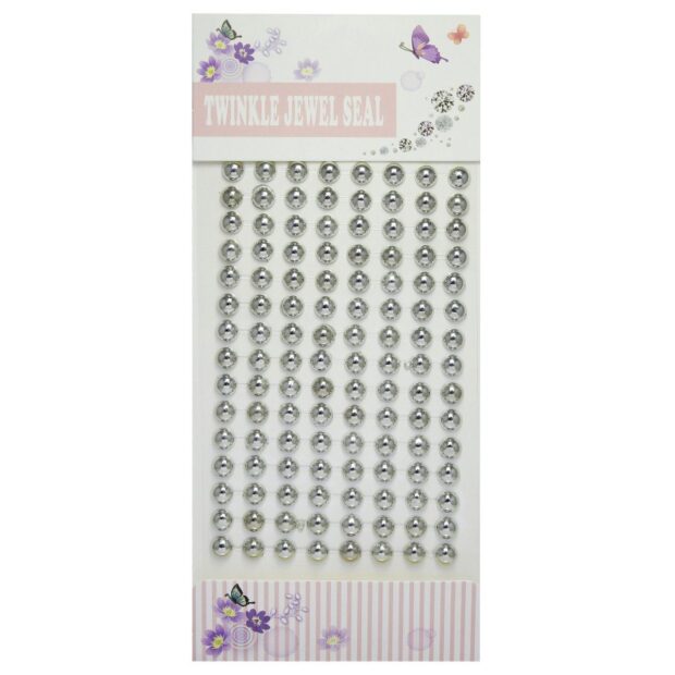 Self-Adhesive Pearl Stone Stickers For Craft | Silver | Round